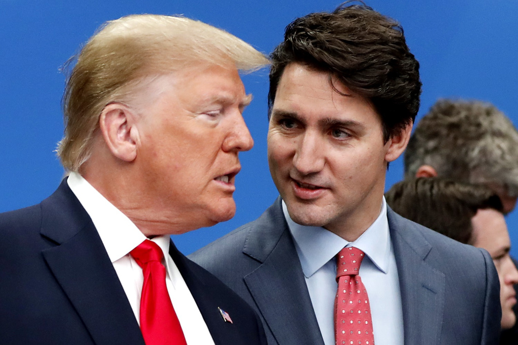 ▲加拿大总理特鲁多表示将“回应”特朗普祭出的25%关税,特朗普10日再酸特鲁多是“伟大的加拿大州州长”。图为2019年12月特朗普与特鲁多在北约圆桌会议前会面。 美联社