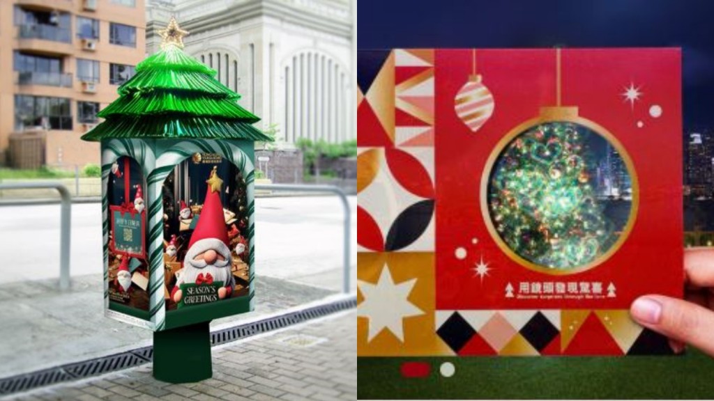 该圣诞明信片由旅发局设计,两个主题分别为圣诞小镇及圣诞礼物包装。明信片上设有滤镜片,透过镜片观赏灯饰时,光点会转成圣诞树和爱心图案。