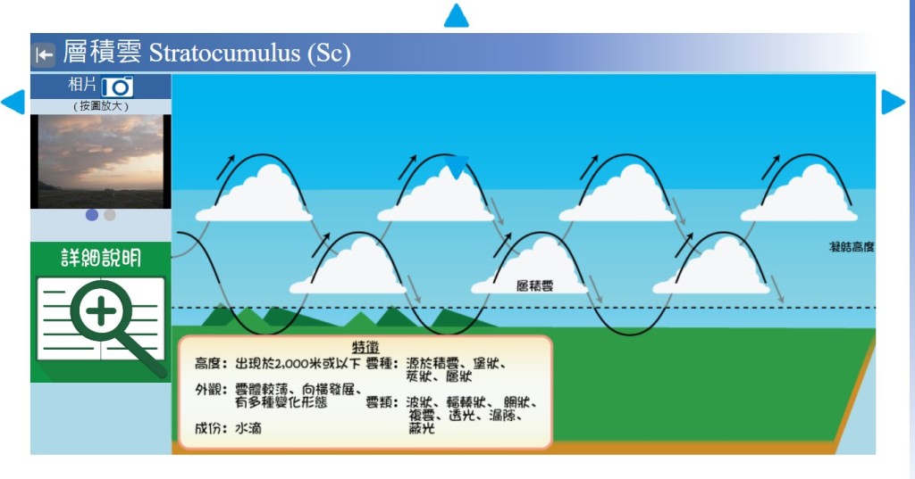 帖文尾段还连结到天文台网站”『度天』赏云(初阶)」(https://kids.weather.gov.hk/eBook/ebook_cloud/ebook_cloud02_uc.htm#p1s2)的“低云族”,附图解释“层积云”的形成——