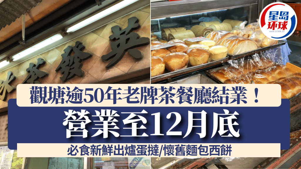 踏入12月,结业潮仍未遏止,继连锁超市分店及戏院陆续结束营业之外,近日网上社交媒体亦传出观塘一间老牌茶餐厅,英发茶冰厅将营运至本月底。 换言之,餐厅的新鲜出炉招牌蛋挞及怀旧面包西饼,也快将成为绝唱,老饕抓紧时间赶及本月底前大快朵颐。