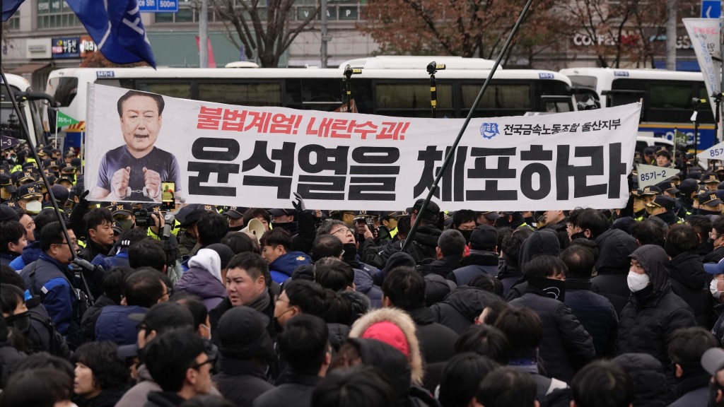 ▲要求弹劾尹锡悦的韩国民众游行到首尔汉南洞的总统官邸入口。 美联社