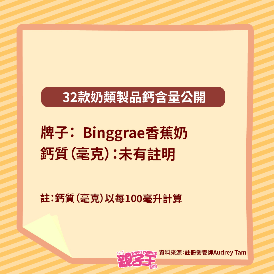 选牛奶或牛奶饮品首先要了解其营养价值,以钙质为主(有口味的牛奶饮品还需要留意糖分含量)。以十字牌和维记的奶类为例,一盒236毫升的高钙牛奶饮品含401毫克钙质,较鲜奶的260毫克多约50%。以四至六岁儿童每日需要800毫克钙质计算,饮用两杯高钙牛奶饮品已满足到建议摄取量。而钙含量较低的某日本100%鲜奶,每100毫升含94毫克钙质,饮用一盒236毫升只摄取221毫克钙。另外,有部分却未有在营养标签上注明钙质含量,包括Binggrae香蕉奶、大阿苏云拿呢拿牛乳和旺仔奶类饮品等。