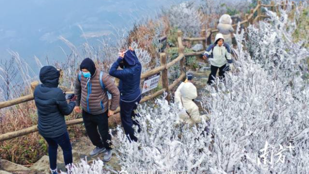 据“@清远天气”消息,12月14日早晨,清远连山金子山出现雾凇冰冻!气像部门预计,到16日仍可观赏到雾凇。