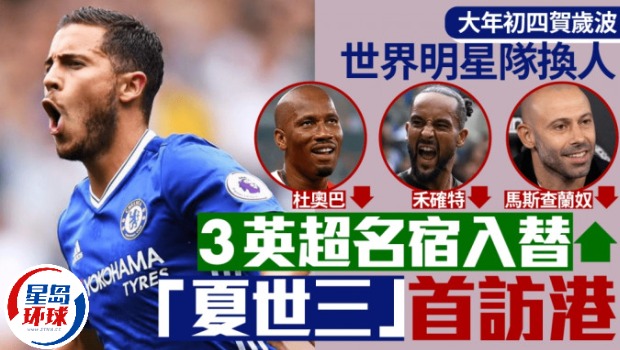 贺岁杯2025(FWD富卫保险贺岁杯)世界明星队访港阵容有变,原定出席的马斯查兰奴、杜奥巴和禾确特未能参加,改由3位英超名宿夏萨特、艾殊利高尔,以及沙格拿出战。贺岁杯将于明年2月1日,即大年初四在香港大球场举行,由世界明星队对香港明星队。