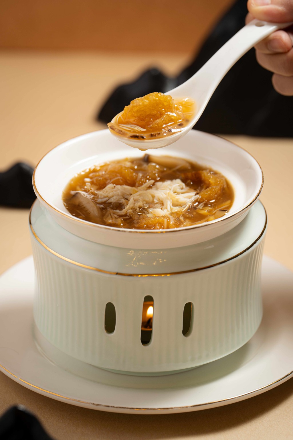 ▲出于“大少”太太为泰国潮州华侨,新店因而创出“潮式红烧鱼镖海皇羹”,融入潮州红烧翅的烹调精髓,配以花胶丝、瑶柱、蟹肉等珍贵海味(公关提供)