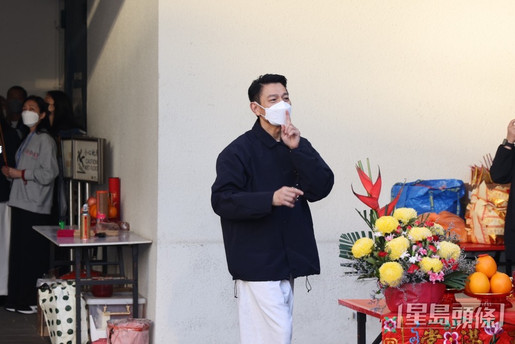 刘德华则向歌迷挥手示意,又做安静手势等,他上香后也刻意走前几步,继续向歌迷挥手,有香港歌迷更趁机送上应援手幅,成功获刘德华仔亲手接收,问刘德华状态OK吗?他双手举姆指示意非常好。而刘德华上香后,刘太朱丽蒨也有上前拜神。在工作人员准备好后,刘德华率众举起手打气,为今晚表演预热。