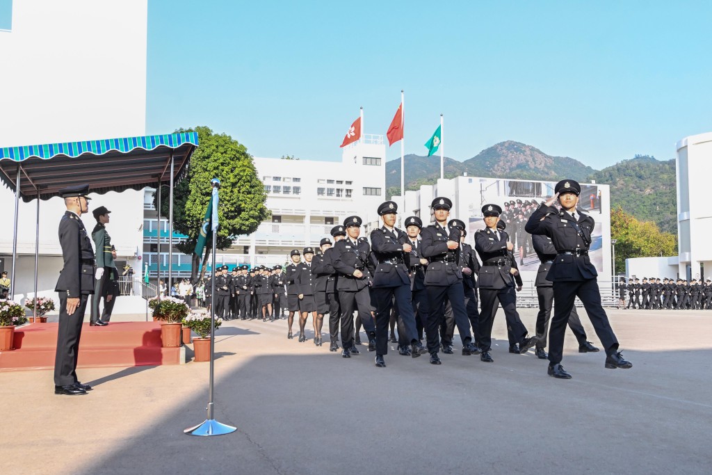 海关关长何珮珊今日(17日)出席于香港海关学院举行的第140至143届督察基本训练课程暨第496至501届关员基本训练课程学员结业会操,检阅70名见习督察及115名见习关员。