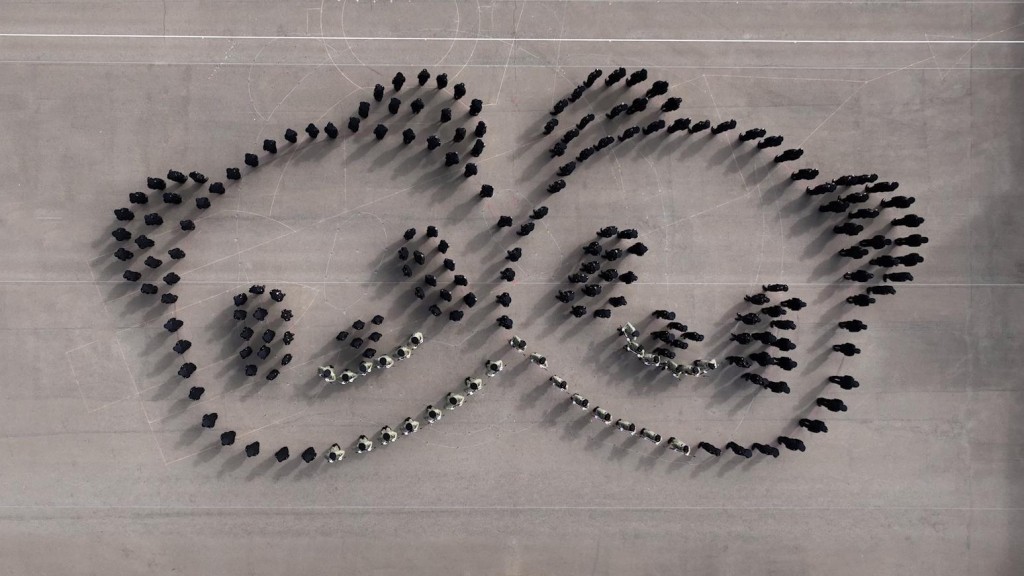 ▲会操队伍组成一对大熊猫宝宝图案。 政府新闻处图片