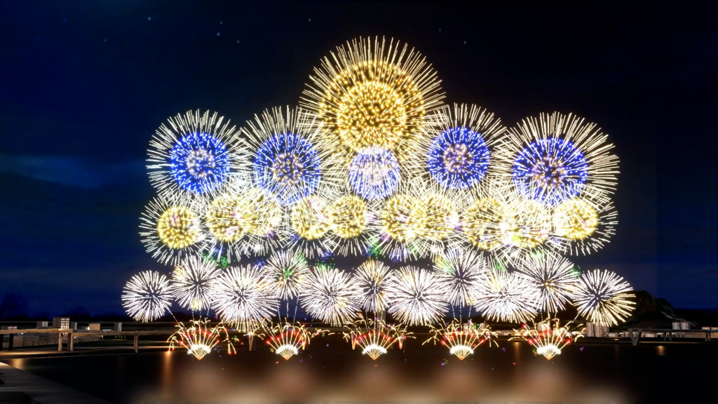 今年的烟火秀以黄、蓝、绿、红四大色系展开烟火四大篇章,融合全新创作音乐,展现新北市的自然美景与人文情怀。施放前的倒数30秒,更结合全台独家的“雷射浮空倒数”与淡江大桥光雕秀,在灯光与色彩流转间,渲染跨年氛围,带来视觉与听觉的双重飨宴。精彩亮点包括百发连发的跨河开幕秀、首创双尺玉与水中爆破特效、以及以彩虹墙和五色牡丹烟火打造的视觉盛宴,燃放面宽达一公里,气势磅礡。
