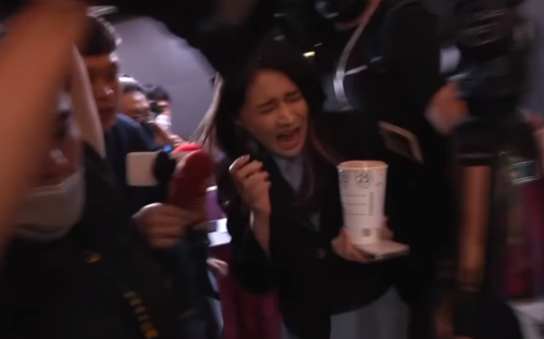 ▲赖品妤曾疑似被摄影机脚架绊倒,却趁机指控记者推倒她,引发热议。