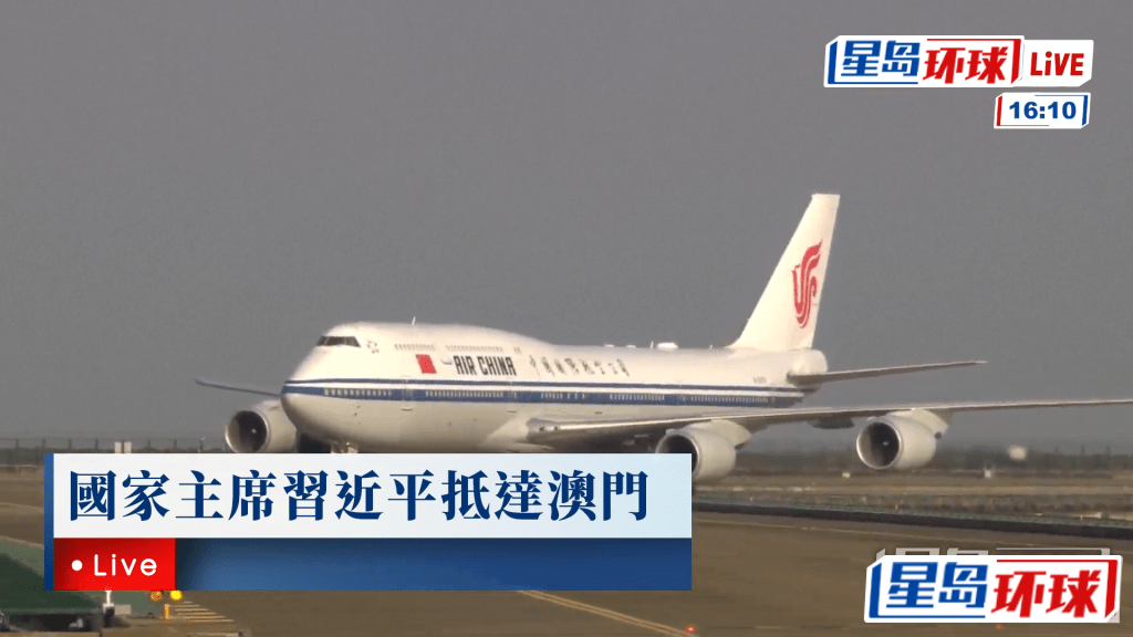 ▲国家主席习近平乘坐的专机抵连澳门机场。