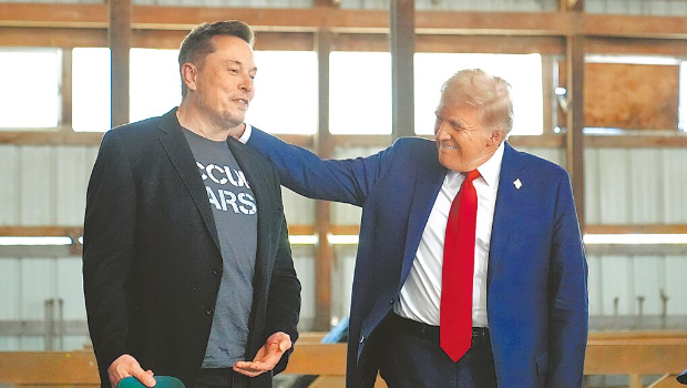 ▲美国总统当选人特朗普(右)18日呼吁国会议员,拒绝一项维持政府在20日后资金供应的权宜拨款法案。特朗普这番评论呼应马斯克(左)稍早的发文。(美联社)