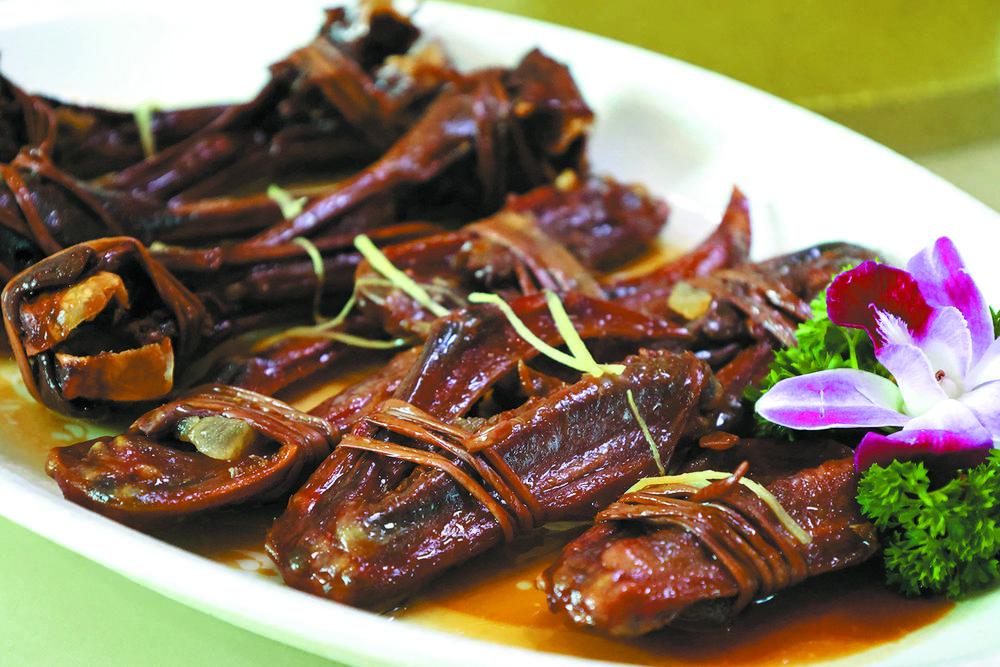 凭借独特的风味和技艺,横山鸭扎包享誉珠海及周边城市乃至港澳地区。令人意想不到的是,极负盛名的鸭扎包竟来源于一场机缘巧合。清朝光绪年间,美食爱好者叶鸿波从新会三江皮子村来到时属睦洲的五权乡横山街(今属斗门区莲洲镇)定居,做打银和布匹生意。一次偶然机会,叶鸿波尝试把鸭脚、鸭肠包在一起腌制后清蒸,结果出乎意料地美味。逐渐地,叶鸿波摸索出制作最原始版本的“鸭扎包”美食独特技艺,其儿子叶润超也在他的影响下开始学习。