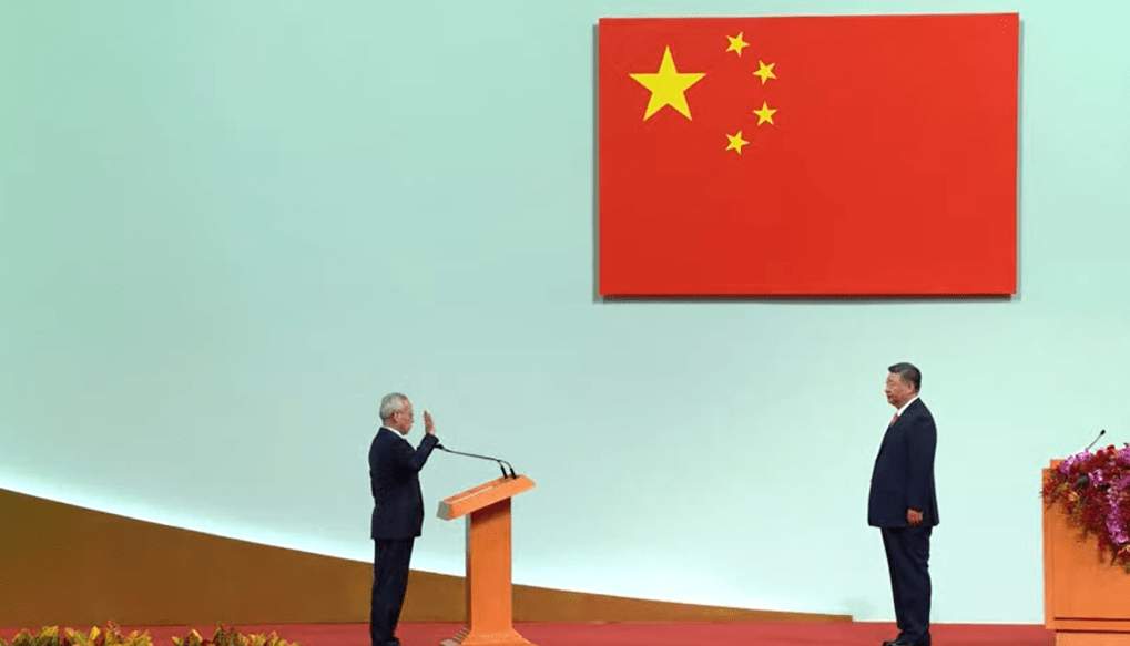 ▲岑浩辉宣誓就任澳门行政长官,习近平监誓。