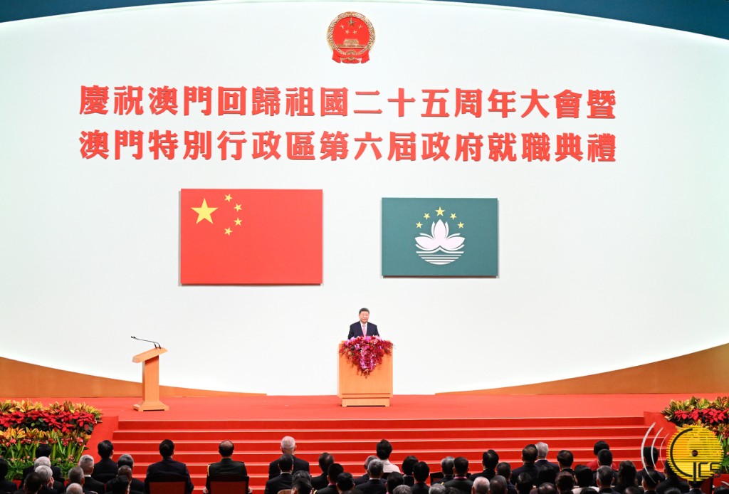 ▲国家主席习近平昨日(20日)在庆祝澳门回归祖国25周年大会暨澳门特别行政区第六届政府就职典礼上发表重要讲话。 澳门新闻局图片