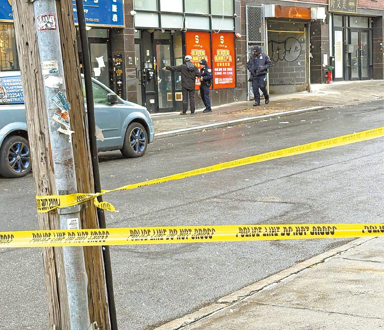 ▲法拉盛海特街一处疑似非法赌博场所发生抢劫枪击事件,两华人中枪罪案,警方封锁现场街道调查,至20日下午仍未解封。