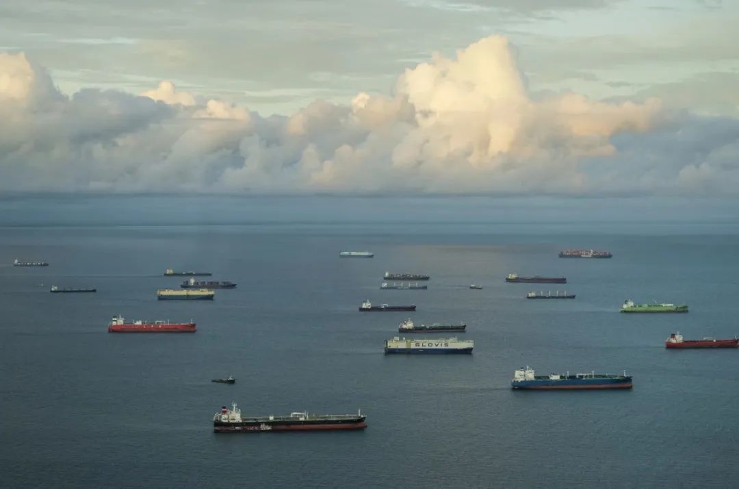 ▲6月28日,在巴拿马城,货船等待通过巴拿马运河。 美联社