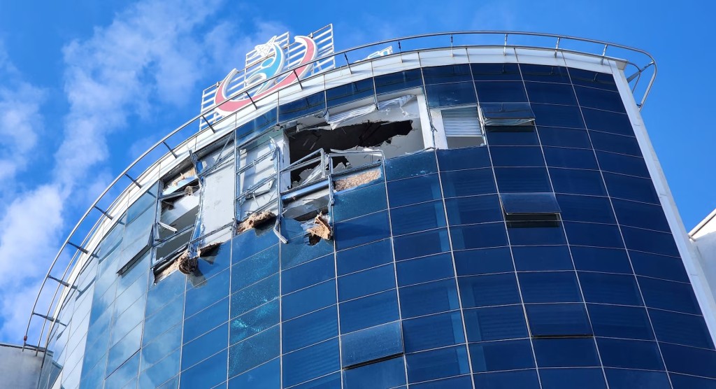 ▲医院玻璃外墙被撞毁。路透社