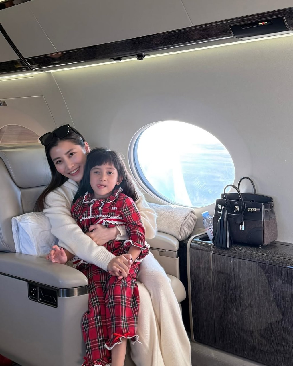 从IG图片所见,陈雪铃和老公以及一对子女置身豪华私人飞机机仓之中,穿上全套白色休闲服的陈雪铃头架墨镜拥着爱女,爱女活跃佻皮伸晒脷非常幸福,旁边放着陈雪铃的名牌包包。之后爱女踩上真皮飞机座椅上,尽显精灵一面。另一张是飞机上的套房,一对子女摊卧在床上,旁边的圣诞装饰十分抢镜。而爸爸则穿上黑色短Tee牛仔牌正讲电话,可能于旅程前仍有公务。一家四口此行到日本京都旅游,悠闲欣赏京都的亭台楼阁,十分写意。