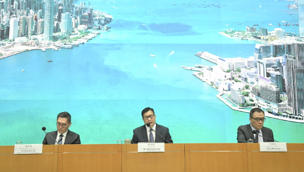▲(左起)警务处副处长简启欣、保安局局长邓炳强、国家安全处总警司李桂华。