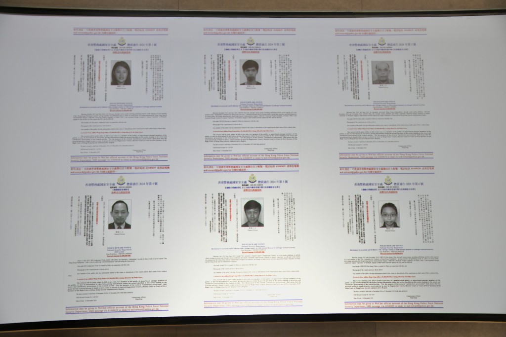 另外,警方国安处增列6名人士为通缉犯,包括钟剑华、刘珈汶、钟翰林、何良懋、郑敬基及张晞晴,悬红100万元(港币)。