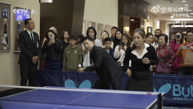 活动当地周日举行,曾六夺奥运金牌的马龙及里约奥运女子团体金牌得主刘诗雯,与在1971年访华的美国乒乓球代表斯威里斯夫妇及现役美国乒乓球队代表切磋球技。