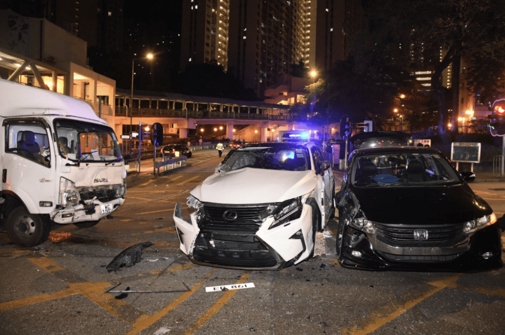 西贡清水湾道发生车祸。 今日(25日)凌晨一时许,一辆黑色私家车和一辆白色私家车并行沿旧清水湾道向牛池湾方向行驶,一辆货车则沿新清水湾道行驶,当双方驶至十字路口时,白色私家车被货车拦腰撞到,再打横碰到旁边的黑色私家车,三车顿时停在十字路口位置。 受车祸影响,现时往西贡方向近彩云村全线封闭。