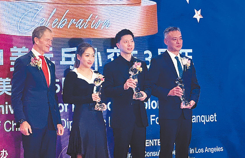 晚宴上,同时举行了中美乒乓球队交换队服仪式,并向美国乒乓球国家队前队员、“乒乓外交”见证者Dell Sweeris和Connie Sweeris颁奖,以及马龙和刘诗雯等颁发中国乒协个人外交贡献奖。