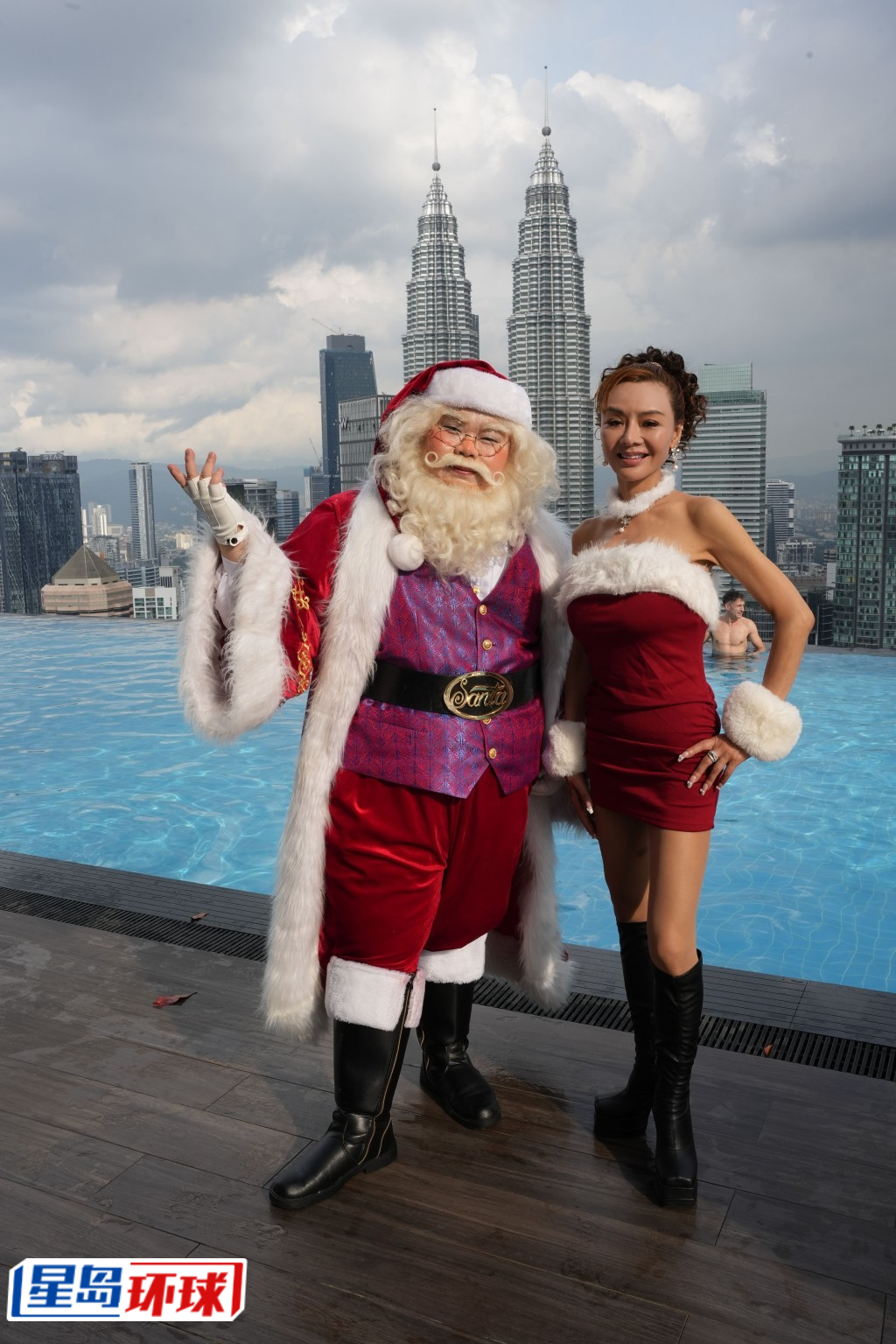 叶子楣(Amy)早前在马来西亚参予她有份投资的“榴莲酒店”签约仪式后,顺道在当地过了一个她人生中最火热的圣诞节。为了应节她更身穿圣诞女郎服饰,和圣诞老人一起合照,顺道将节日快乐气氛和大家分享,相片背景包括了马来西亚最著名的双子塔,当他们经过酒店健身室时,Amy笑说圣诞老人要多健身减肥,好让那些运载他去世界各地派送礼物的驯鹿可以减轻负担。