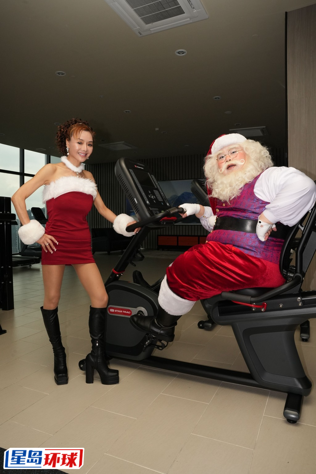 ▲当他们经过酒店健身室时,Amy笑说圣诞老人要多健身减肥。