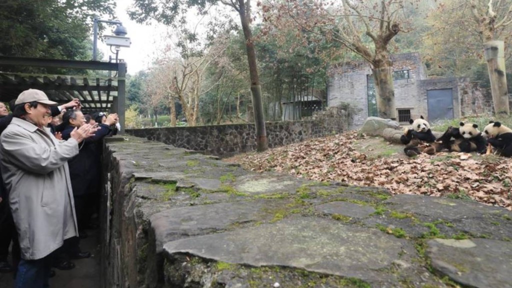 ▲马英九25日参观四川大熊猫保护研究中心都江堰基地。图:马英九基金会