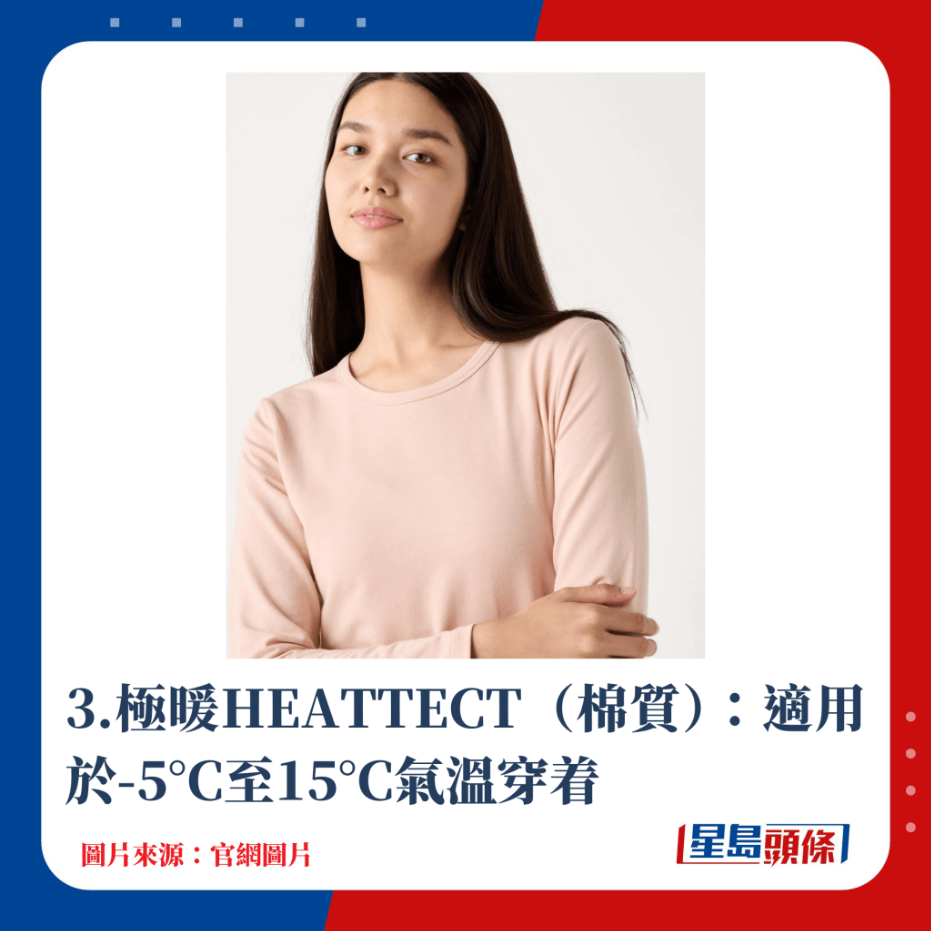 ▲如果整天留在室内或短时间于户外的话,可长期穿着一般版HEATTECH便可。