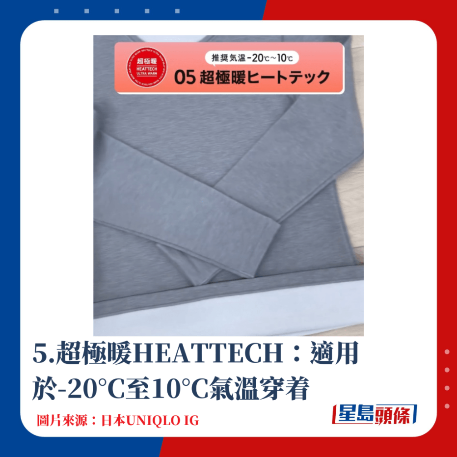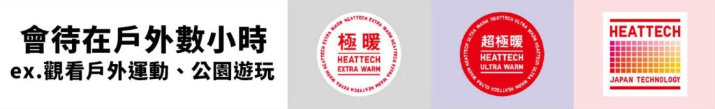 ▲如果大家会于户外观看运动赛事或到公园游玩的话,大家于初冬时可选用极暖版HEATTECH,入冬时穿上超极暖HEATTECH作保暖,初春只穿一般版HEATTECH即可。