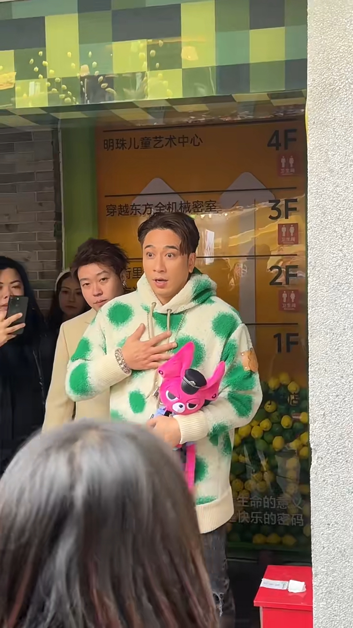 ▲吴卓羲叉错脚仆亲时,有粉丝仍争取机会抽水。
