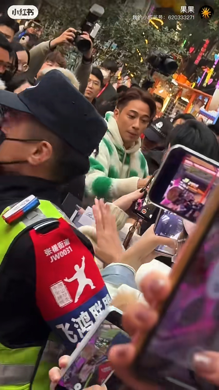 另有女狂迷在小红书贴片,表示:“吴好ong!现场太挤有人跌倒了”,结束活动后,吴卓羲离开商场时看到整条街都塞满粉丝,他都惊呆了,他被保安及工作人员开路离开,期间吴卓羲都有抛出金句“唔好ong”并边行边举起手向粉丝打招呼时,该女狂迷竟一手捉实偶像手仔,更截图贴在留言区,兴奋说:“是我的手抓住了”,有网民笑女狂迷懂得把握时机,“笑死,你也是懂抓住机会的”。