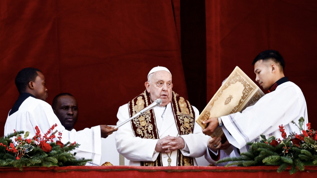 罗马天主教教宗方济各于周三圣诞节演讲《致全城与全球》中,呼吁世界各地“武器噤声”实现和平,提及俄乌、苏丹等地,同时谴责加沙“极其严重”的人道主义局势。