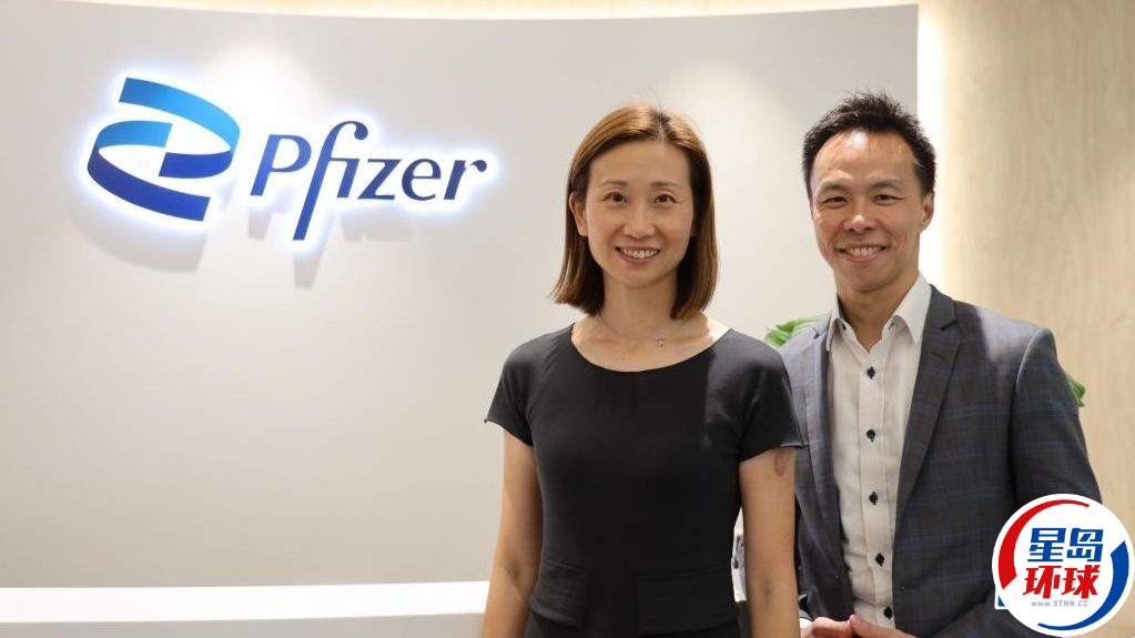 ▲辉瑞香港及澳门区法规科学主管洪凯欣(左)、免疫及炎症、肿瘤科业务负责人兼营运负责人陈敏刚(右)分享辉瑞香港的历程。