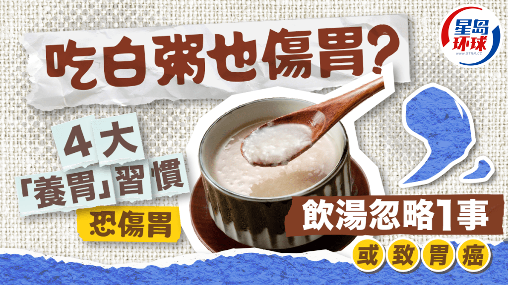 【养胃/胃溃疡/胃病】腹泻或肠胃炎时吃清淡些,吃白粥正确吗? 有医生及营养师指,有些看似“养胃”的饮食习惯,却很可能伤胃,加剧胃部不适症状,更恐引致胃癌。 专家们又提出6大保护肠胃的建议,吃粥、喝汤时要注意甚么?