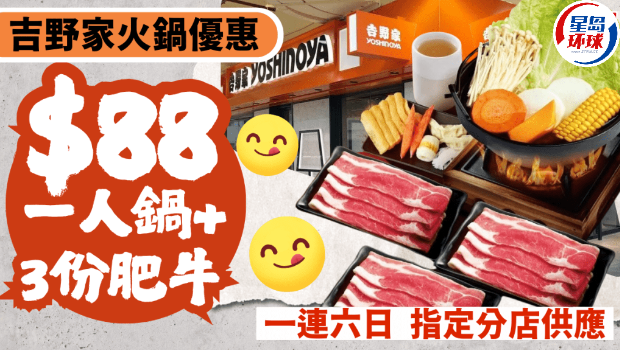 为庆祝成立125周年,吉野家推出全新火锅优惠,由即日起到12月31日到吉野家指定分店,即可以$88超抵价享用一人边炉套餐及三份谷饲肥牛,即睇吉野家特价火锅详情!