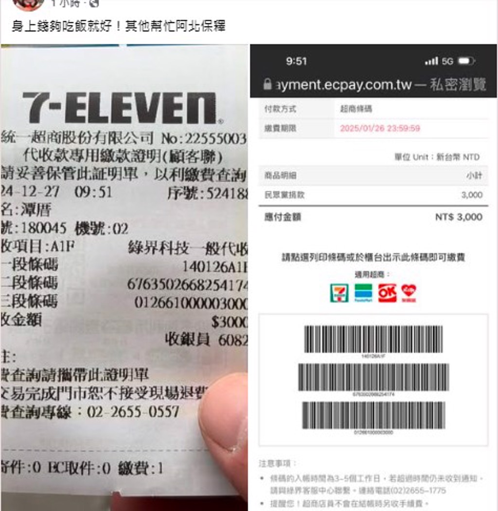 ▲脸书社团“柯文哲阿北粉丝后援会”出现不少小草贴出捐款到民众党的明细,要支援交保金。(截自脸书社团/柯文哲阿北粉丝后援会)