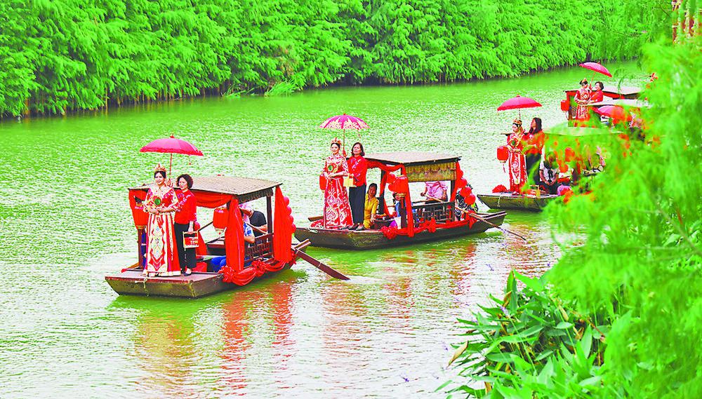 近年来,珠海斗门岭南大地综合体建设的“水上婚嫁”体验式传承基地,为赋能项目在新时代实现创造性转化、创新性发展搭建了“非遗梦想”起飞的新平台。与此同时,将水上婚嫁进行多维融合,走进校园,进驻景区等,通过“文化自然遗产日”“斗门民俗文化展”等大型传承活动与常态特色传承,形成点、线、面联动,静、动态结合的新格局,让水上婚嫁扎根乡土、植根民心。