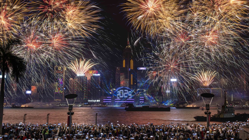 【烟花/跨年/倒数/旅发局】旅发局将于12月31日晚上举办香港最大型跨年倒数盛事,在维多利亚港的夜空上演以“幸福乐章”为题的烟花汇演,重点呈献四大烟花特效。