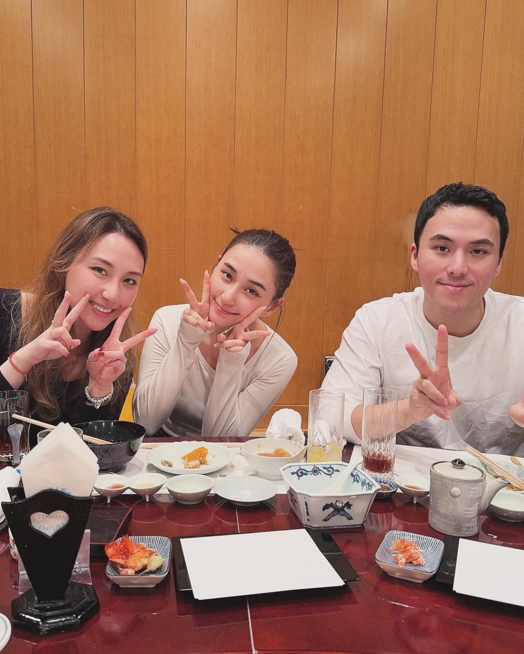 另外一张照片,可见二人于东京铁塔前留影,何超云依偎在Douglas结实的胸膛上,露出小鸟依人的模样,完全反映他们爱得甜蜜。 原来此行并非仅得何超云和Douglas,何超莲及何猷启亦有露面,他们和家姐和家姐未婚夫一起吃日本餐,并举起V字手势,一家人一起过节,简直此刻无价。