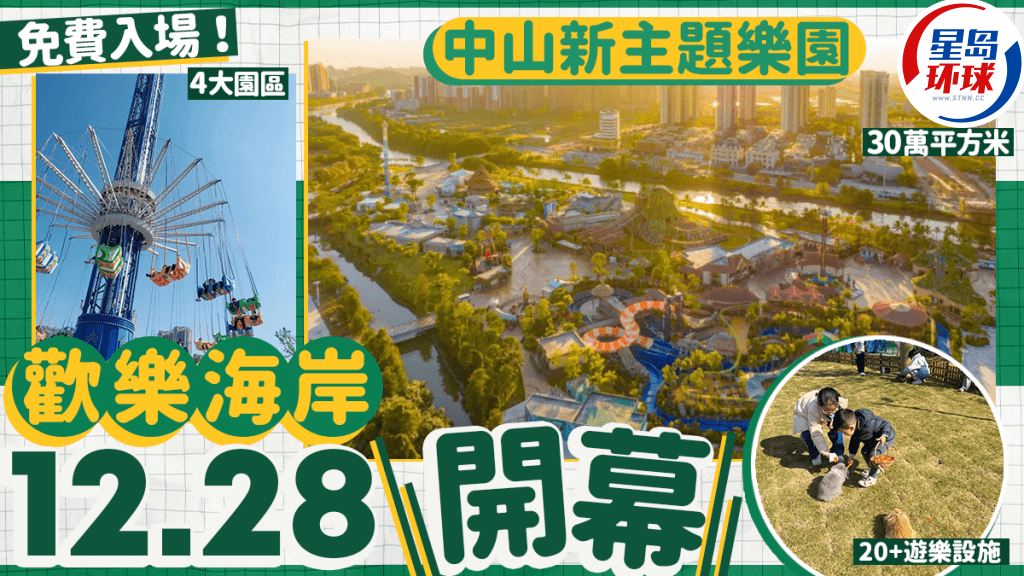 随着深中通道通车,港人前往中山吃喝玩乐有更多交通选择! 近日,中山全新大型地标“中山欢乐海岸奇遇时光乐园”会在12月28日正式开幕,占地近30万平方米,设有4大主题园区、超过20款游乐设施,除了可以亲身体验各种刺激的机动游戏,亦可以与可爱的小动物拍照打卡,本文整理中山欢乐海岸奇遇时光乐园园区介绍、门票及交通攻略,无论是三五知己、亲子、情侣出游都合适,势必成为中山全新玩乐好去处!