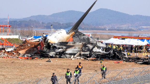 ▲韩国济州航空编号7C2216客机29日上午坠毁韩国务安国际机场,官员表示,塔台曾警告鸟击,机长后续发布“Mayday”求救讯号,不过客机仍在机长求救5分钟后坠毁。(美联社)