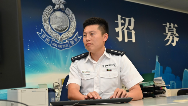 “警队面临其中一个挑战,就是人手不足。去年机缘巧合加入警察招募组,希望为警队广纳人才,壮大队伍,为市民提供更专业全面的服务。”父亲为警务人员的警务处人力资源科总督察陈梓维Jeffrey,大学毕业后加入港铁工作,一年后决定踏上父亲的足印,结果成功投考督察,受训完毕后担任军装巡逻小队指挥官,其后在多个警队部门工作,及至去年加入警察招募组,走进本港各大学进手招募,并走进内地的大学,向香港留学生递出橄榄枝。Jeffrey感言,警务人员可以接触不同领域,可从中学习很多知识,让他获益良多,未来会全情投入做到最好:“香港警察,使命必达!”