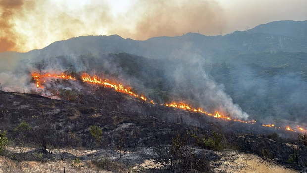 元朗大棠28日下午发生山火,焚烧逾一日仍未救熄,惟经消防持续灌救后,最初分别长达200米及50米的两条“火龙”,已缩减至一条约30米的火线。至29日消防继续救火,政府飞行服务队亦出动直升机投掷水弹,终于下午4时17分将火救熄。