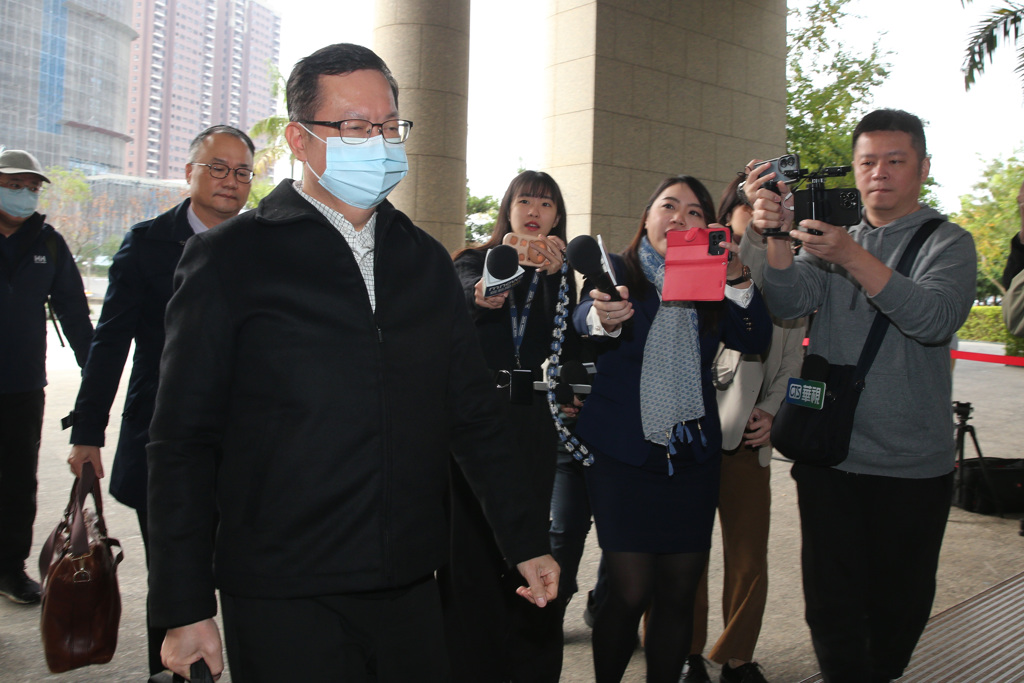 桃园前市长郑文灿涉嫌在9.12公顷的工五扩大市地重划案收贿500万,桃园地检署依贪污罪嫌起诉求刑12年,郑文灿30日第2度出庭,在律师陈永来陪同下,提前逾半小时于8点58分步入法院,面对记者提问全程不发一语。