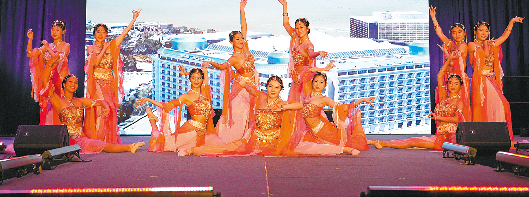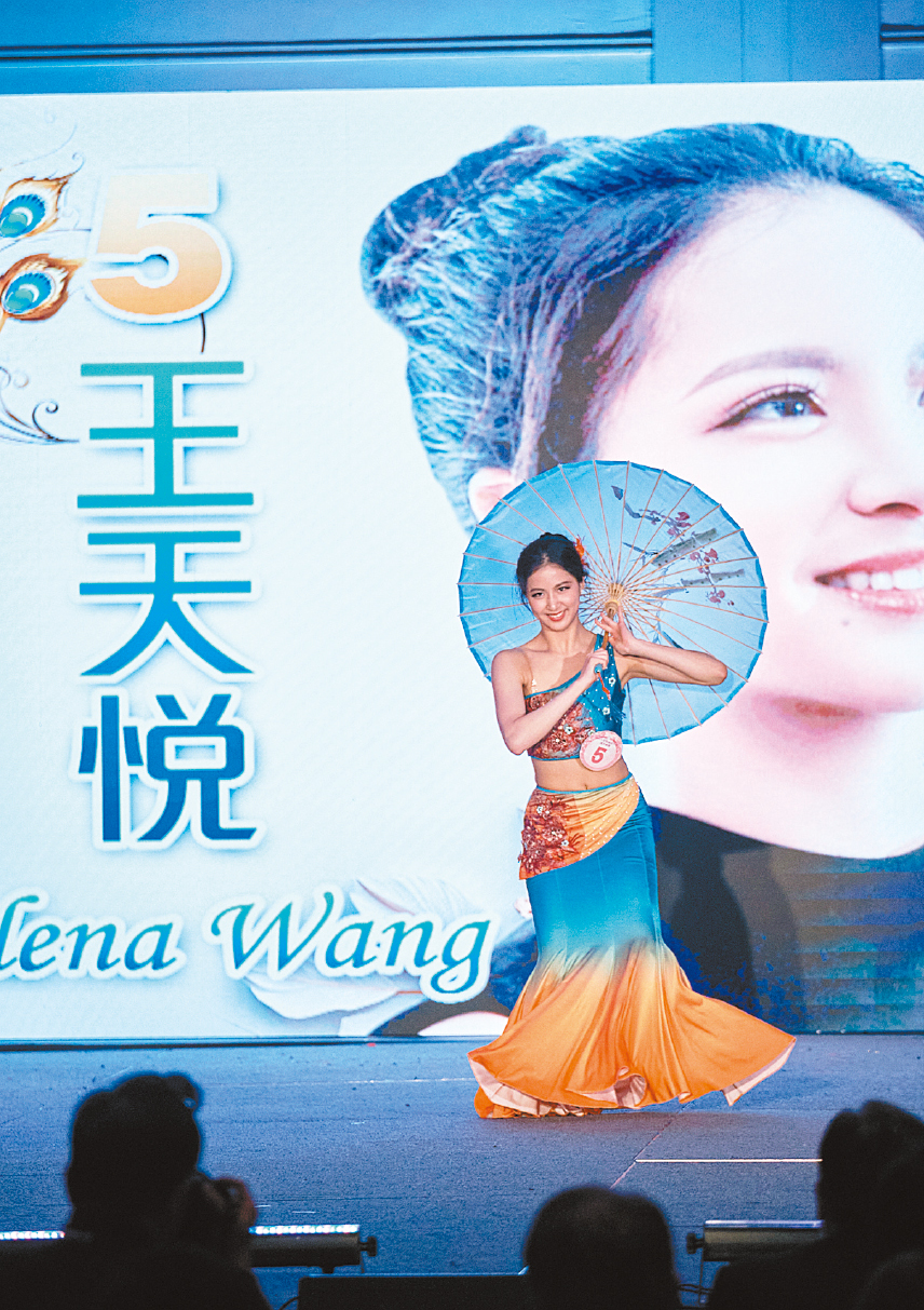 ▲佳丽们身穿飞天服饰演出敦煌舞蹈开场。记者黄伟江摄