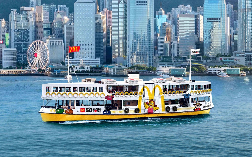 另外,麦当劳今年更带来麦当劳主题天星小轮,香港市民更可于1月1日免费乘搭来往中环及尖沙咀的天星小轮!麦当劳主题天星小轮以麦当劳乐园人物为设计主题,由船顶、船身及船内均以麦当劳乐园人物为装饰主题,亦可在船上重温1976年第一间九龙区麦当劳餐厅开幕时,巨型巨无霸乘坐小艇横渡维港的经典场面!